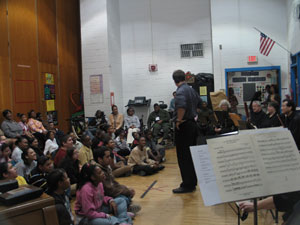 The nature of the “Music Caravan” program is highly interactive. The ensemble performs in a child-friendly environment (such as a classroom, cafeteria or gymnasium) The musical presentation is customized with the on-site curricula instruction team according to age level and a particular group’s attention span but customarily is about 45-50 minutes. The ensemble presents short, suitable examples of the orchestral repertoire and/or pieces specifically designed for educational outreach and motivation. The selections are sprightly and calculated to highlight the different instruments that comprise an orchestra, underline their intonations and demonstrate their power to replicate human communication, particularly drama, emotion and mimicry.